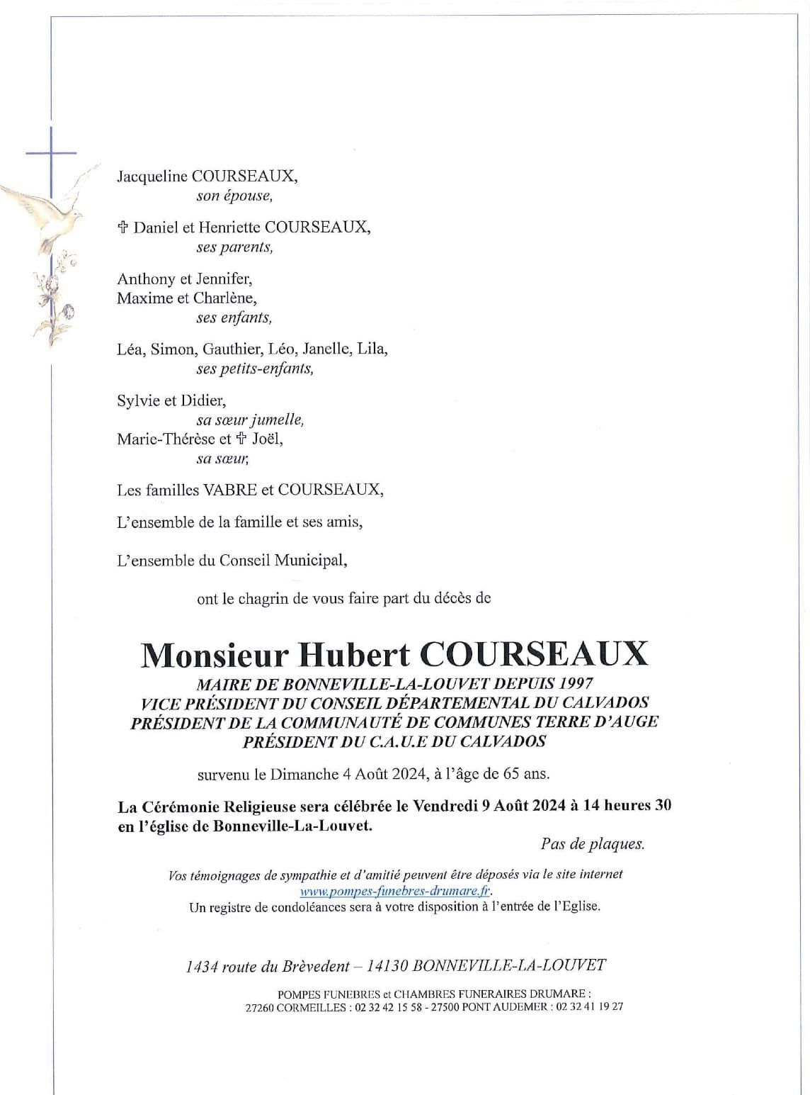 Décès de M. Hubert Courseaux