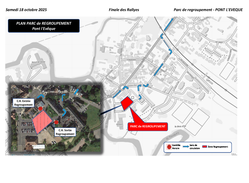 ⏩ Pas de restrictions de circulation dans la ville > Une partie du parking de la place du Maréchal Foch sera réservée au regroupement des véhicules de course (Plan ci-dessous).