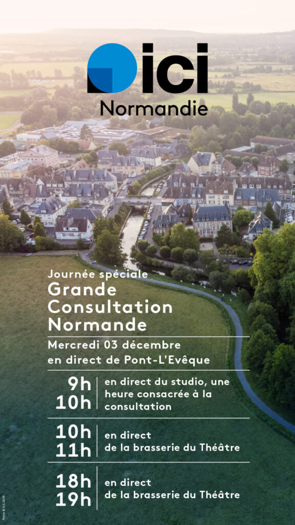 Depuis le 4 novembre, Normandes et Normands sont consultés sur leur région : que faire pour la valoriser, qu’elle rayonne davantage ? À cette occasion, ICI Normandie sera à Pont l’Evêque au « Bar-Brasserie du Théâtre » le mercredi 3 décembre.