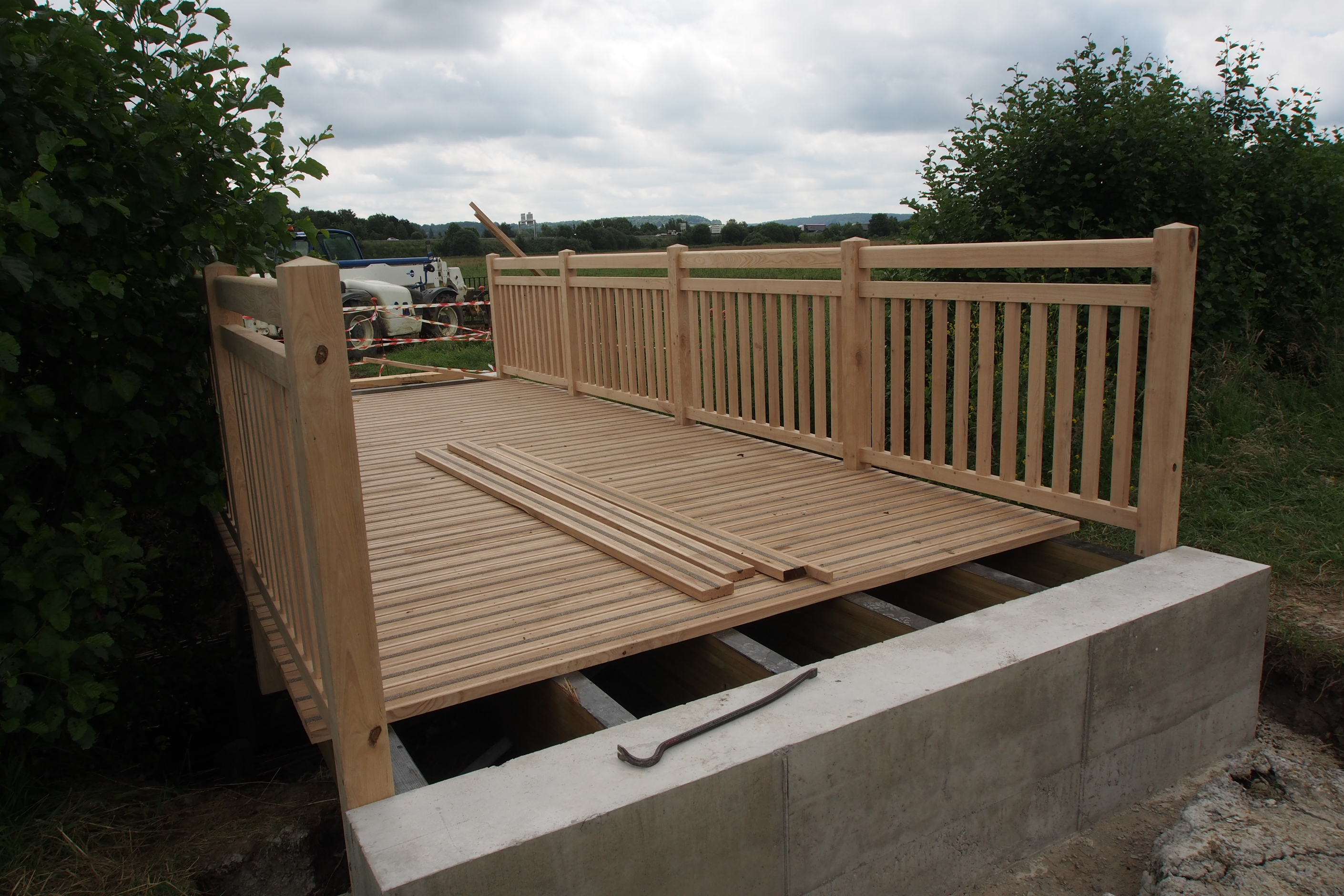 Dans un premier temps dans un esprit champêtre et parmi les bovins, les piétons ont pu circuler sur près de 1400m grâce à l’installation de passerelles au dessus de deux cours d’eau . Dans un second temps et à la suite des travaux d’élargissement de l’A13, une piste cyclable et des espaces naturels de promenades ont été aménagé avec la participation financière de la Région Normandie, Le Calvados Département et la Communauté de Commune Terre d’Auge .