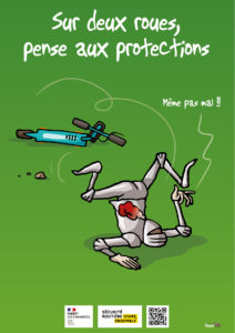 - La sensibilisation des utilisateurs de deux roues sur l’importance des protections Affiche protections (format pdf – 4.5 Mo – 27/06/2022)