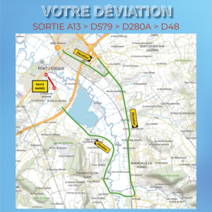Important si vous souhaitez accéder au Lac Terre d’Auge, à l’Hôtel Eden Park, au circuit EIA de Pont-l’Évêque, au Domaines de Geffosses, ou encore au Centre Équestre de l’Ormerie.