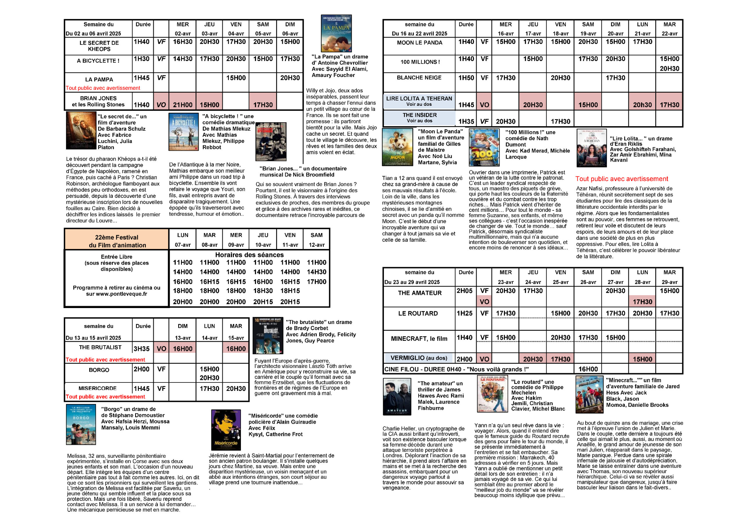 Le programme et les synopsis sont à retrouver sur Allociné ici. Le site internet du cinéma le Concorde est disponible ici